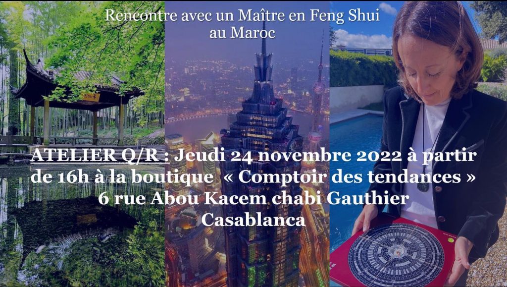 OUVERT À TOUS Le Feng Shui vous intéresse ? Je vous donne rendez-vous pour une rencontre afin d’échanger sur les bienfaits de cette « Science de l’environnement » et de répondre à toutes vos questions. Le Jeudi 24 novembre 2022 à partir de 16h à la boutique « Comptoir des tendances » 6 rue Abou Kacem chabi Gauthier Casablanca […]